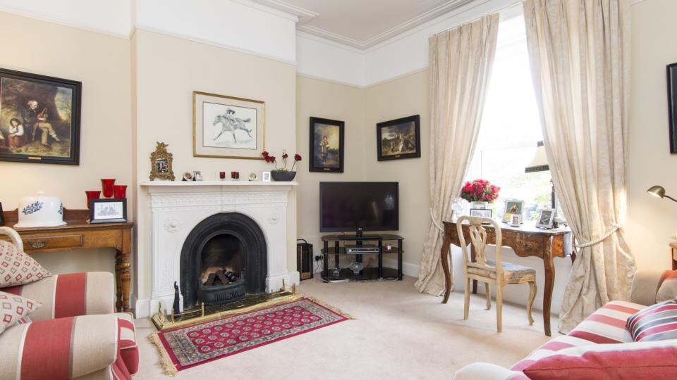 One of the property’s three bedrooms is situated on the hall return. The room does not have built-in wardrobes. There are two bedrooms – and the family bathroom – on the first floor. The master, a fine room that spans the width of the house, overlooks the bowling club pavilion. Residents can become members of either of the clubs. When the children of number 84 were young they were both members of Stratford Lawn Tennis Club while their father enjoyed several evenings in the bar of the private club with other residents when he was younger.