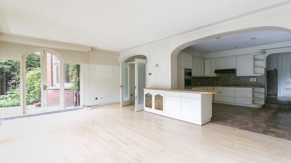 The rooms are beautifully proportioned, high-ceilinged and bright. There’s ornate plasterwork, oak parquet flooring and carved timber panelling, all of which are still intact. The previous owners extended at the back to make a bright eat-in kitchen area and to give better views of the garden as well as access to the curved patio area but, other than that, the layout is much as it was when originally built.