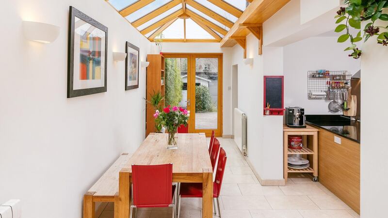 Agent DNG is asking €595,000 for what is a moderately sized house with a floor area of 110sq m (1,184sq ft) divided into three bedrooms, family/kitchen/dining space, reception room and family bathroom.