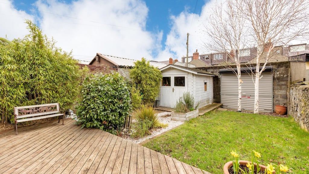 A rear garden has patio decking, lawn, bamboo hedging, silver birch and a back entrance. The front has a railed garden. Agent Sherry Fitzgerald is asking €695,000.