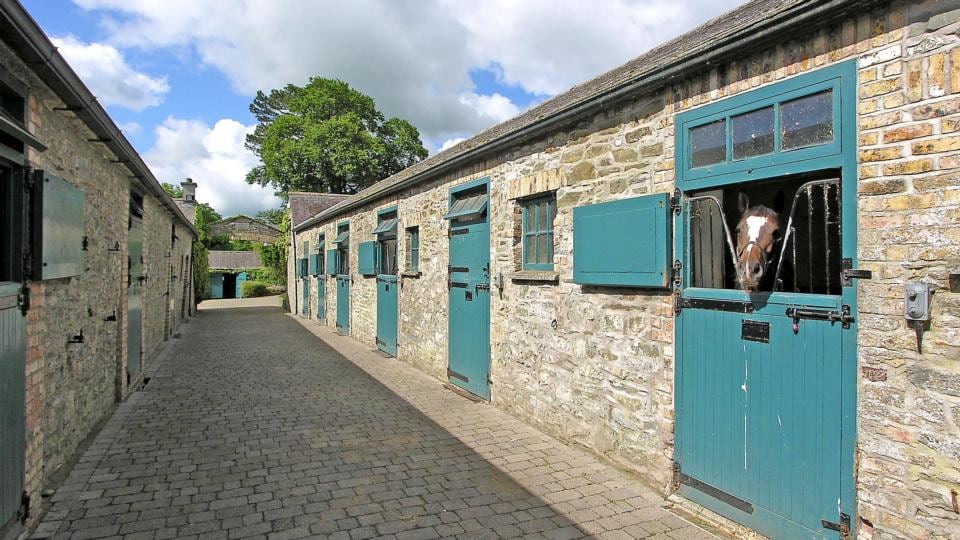 Beyond the buildings is the glory of Castlemartin’s 750 acres of fine limestone land, including 20 acres of amenity and shelter belts, divided into 53 paddocks fenced with stud rail – a rare unit of land measuring two miles from the bottom gate to the house.
