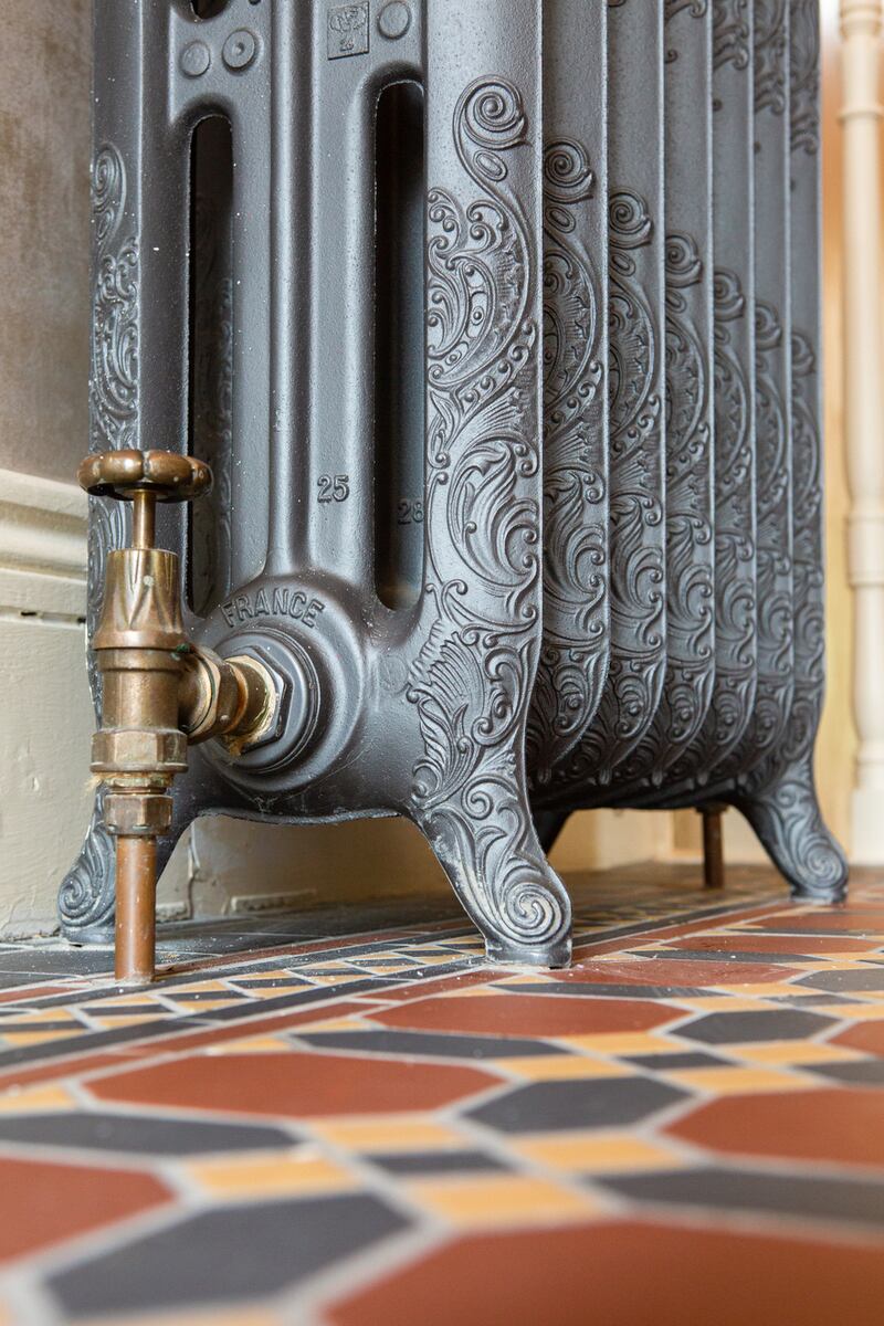 Originally the kitchen would have been down at this level but the layout of number 28 is now far from original and the home’s two double bedrooms are now located down here, one adjacent to a bathroom, situated under the flight of granite steps that lead up to the front door, the other with an en suite bathroom in the rear return.