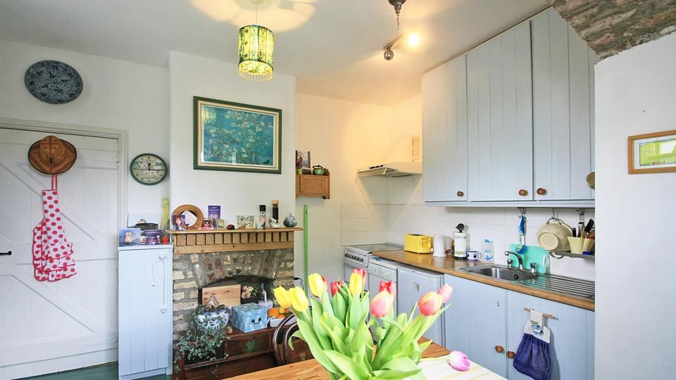 Ceilings are surprisingly high and, particularly in the living room, give a sense of space. The bathroom and utility are part of an extension on the ground floor; the former is blue-tiled and has generous storage in built-in wardrobes.