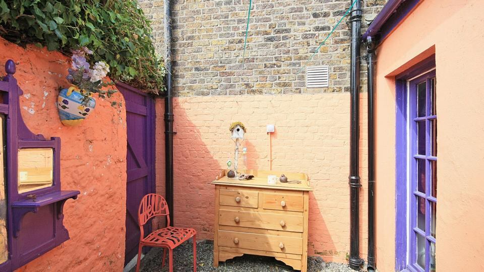Stairs lead from the living room to the first floor bedrooms, all of them with cast-iron fireplaces and sloped ceilings. There is free street parking and a colourful rear yard suitable, as the vendor says, “for bikes and bins but not a picnic”.