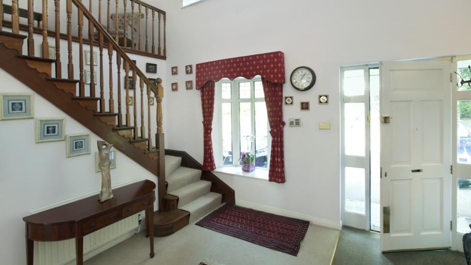 The house was built for entertaining. It has a dramatic double-height entrance hall with a galleried landing and double doors opening into the formal sittingroom.