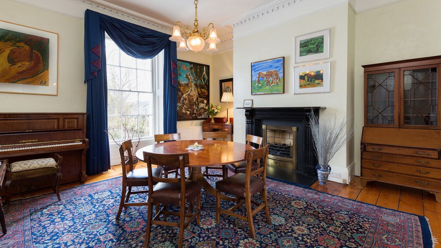 Unusually ornate plasterwork in the centre of the diningroom ceiling is a distinctive and attractive feature of a house on Lower Prince Edward Terrace in Blackrock, Co Dublin. Number 15 is an elegant example of earlier Victorian houses with most of its original period details – high ceilings, decorative cornicing, marble fireplaces, working shutters – intact.