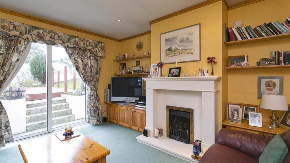 There are two bedrooms and a family bathroom on the ground, entrance floor as well as a cement-floored garage. In good condition, a new owner may want to redecorate and somewhat modernise Oidunno. Surrounded by a third of an acre of hillside garden planted with evergreens, heathers and a rockery, there is steep, off-street parking to the front.