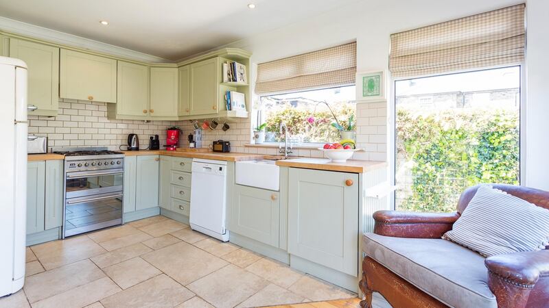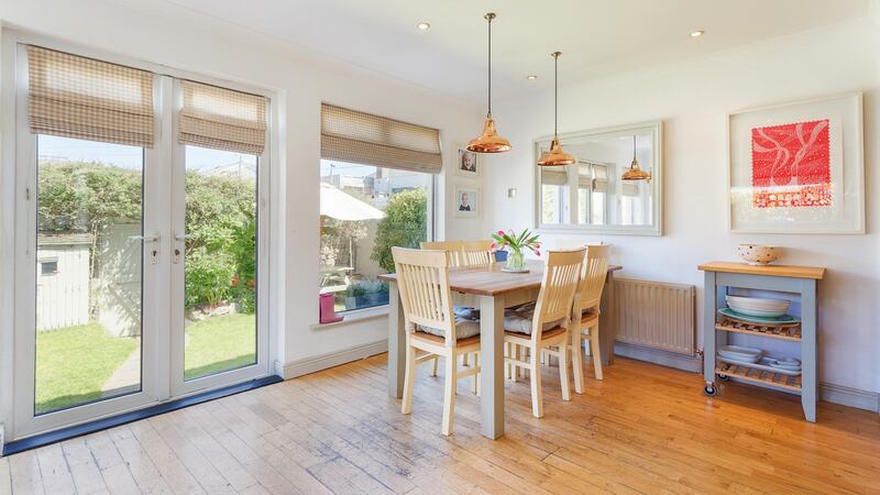 The 80sq m (861sq ft) two-bed a stone’s throw from the centre of Glasthule village has potential to be extended again: planning permission, now lapsed, had been granted for a second storey to be built over the kitchen extension and a small triangular garage at the side of the house, and the couple still have the architect’s plans for these.