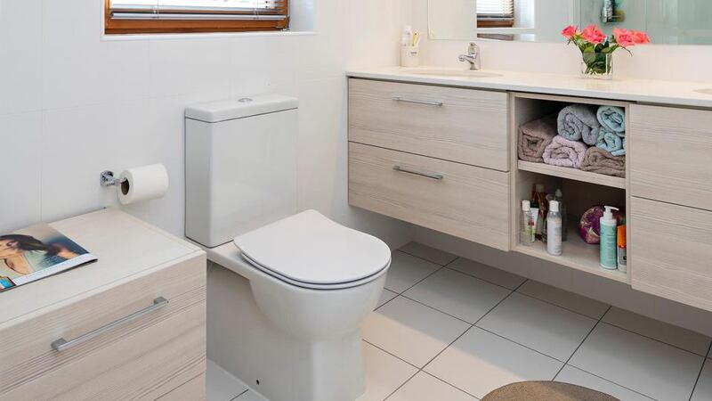 The family bathroom, located on the return, at the top of a steep stairs, has also been upgraded. It is now fitted with a roomy shower and twin sinks set into a wall-hung unit topped with Silestone, the same material used in the kitchen countertops.