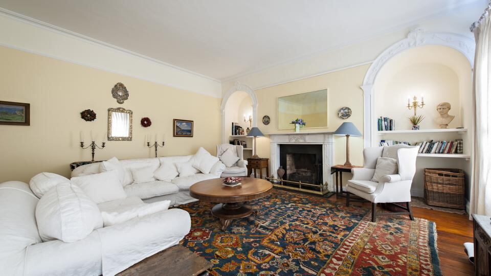 The 725sq m (7,803sq ft) house has a modest character with understated elegance and has two wings which were later additions to the original property. The rooms are warm and perfectly proportioned with high ceilings, one of which in the diningroom has original frieze depicting local curiosities.