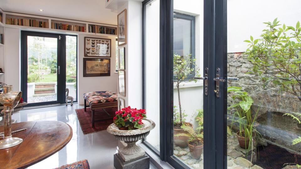 A hidden treasure has to be an old well predating the house that was found during the renovation. These are a rarity in period properties in Dublin, and Douglas has incorporated it into the house's design, giving the library a wonderful riparian setting. The light-filled library, which features wall-to-wall bookcases, has glass doors leading out to the well.