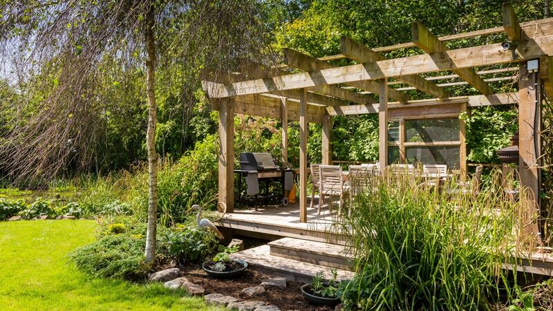 In addition, the gardens, which occupy 2½ acres, feature a Koi pond with yellow iris in full bloom, and two raised decks – one for al fresco dining and the second accommodates a hot tub.