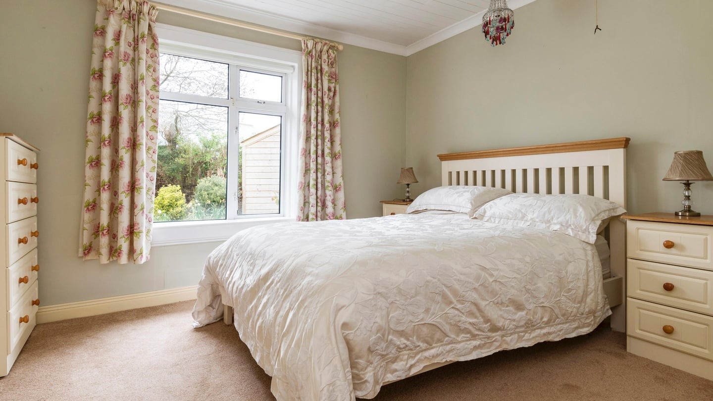 Steps from the entrance hall lead down a corridor lit from above by a roof light where two of the property’s four bedrooms are situated, one single and one double.