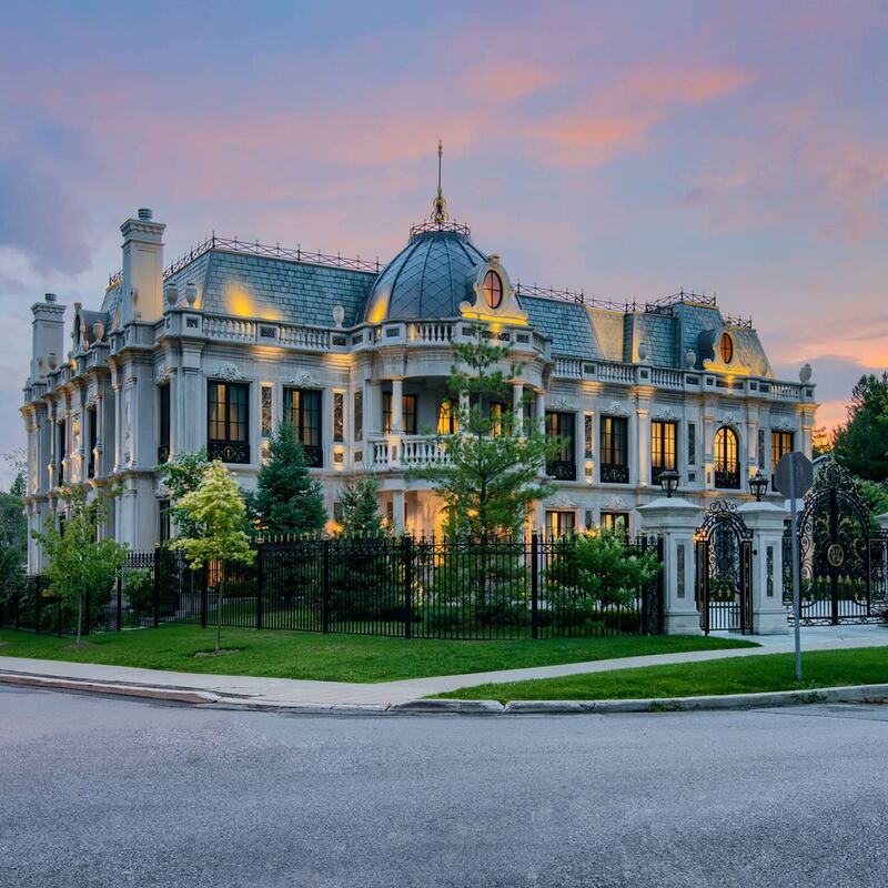 According to its listing on the property website Zillow, the "single-family" home has 12 bedrooms and 16 bathrooms, marble stairs, Sistine Chapel-inspired frescoes, and a carved limestone exterior. The house reportedly also has a wine cellar, private cinema, golf simulator, banquet hall and two swimming pools, plus parking for 14 cars.