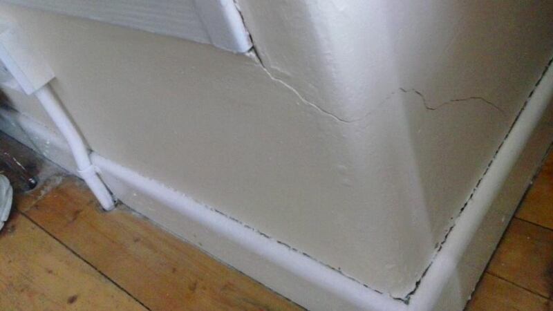 A crack has developed at the bottom right corner of this wardrobe. More recently, a further crack has developed at the top left of this wardrobe. I can also see a crack on the wall when I'm going up the stairs which would seem to be the reverse of the higher crack at the wardrobe.