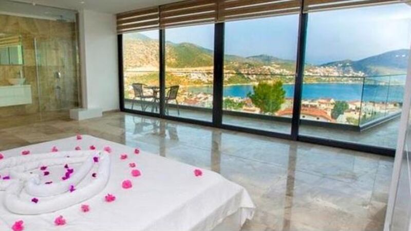 With views of the sea, not least from the main bedroom, this 300sq m (3,229sq ft), four-bedroom villa (with a flexible room to extend it to a five-bed) is in Ortaalan, Kalkan. The stone exterior at ground level speaks to local tradition while the upper floors are more contemporary. Inside spaces are flowing and bright. All of the bedrooms have en suites and the villa has a Jacuzzi and infinity pool.