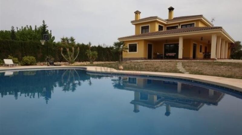 With almost 500sq m (5,382sq ft) of living space, this country house with swimming pool has two floors. Five minutes from Aspe town, it has a hall with marble staircase, living room with floor-to-ceiling glazed doors to a terrace, a kitchen/ dining room, larder, utility and three bedrooms on the ground floor. Upstairs are two more bedrooms, one of which is en suite and opens to a terrace, as does a study. The garden includes an orchard plus kitchen, barbecue and a dining area beneath trees. Alicante and beaches are half an hour away.