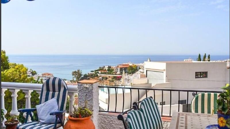 In Nerja, with views of the sea, this two-bedroom villa has its own swimming pool. On two floors, the house has living accommodation on the top floor to avail of the briny vista. There is a living room, kitchen with breakfast bar, a toilet and terrace. Both downstairs bedrooms have en suite bathrooms and they share a covered terrace beside the swimming pool. Price: €349,000. Agent: rightmove.co.uk