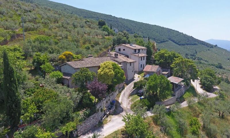 This 170sq m (1,829.8sq ft) farmhouse with a 16sq m (172sq ft) terrace has two storeys and is split into two, with self-contained accommodation on each floor. On the ground floor is a living room with fireplace, a bedroom and bathroom while above, accessed by both internal and external staircases, is a living room, study, kitchen with fireplace, bedroom and two bathrooms. The interior of the house, in Pigge near Perugia, is traditional, with exposed stone walls, timber beams and terracotta tiled floors. It is set in a garden of fruit trees, including olive.