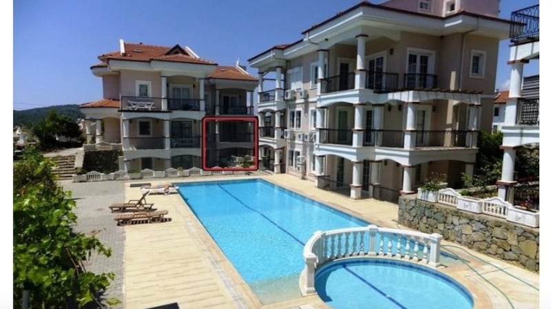 This three-bedroom duplex apartment is in a scheme of 16 homes with a shared swimming pool. It is close to shops, restaurants and beaches and about 15 minutes from the harbour town of Fethiye. The 103sq m (1,108sq ft) home has an open-plan kitchen, living and dining area which opens onto a terrace, this is also shared by an en suite bedroom on the ground floor. On the floor below are two more bedrooms, one with an en suite, and a bathroom which also opens to a terrace. It is furnished. Price: £59,950 (about €69,430) Agent: