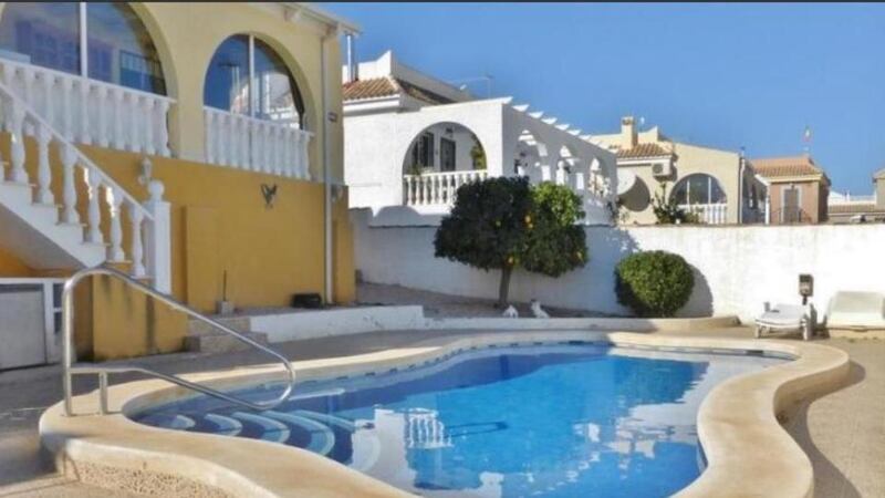 A 15-minute drive from the beach, this villa sits in a walled garden with a swimming pool of its own. At the front is a conservatory and beyond it is a livingroom, a diningroom, kitchen, bathroom and two bedrooms. Space beneath the villa is currently used as a store, but it could house more living space. There is a roof terrace. The house is in the residential Camposol golf development, set in a valley.