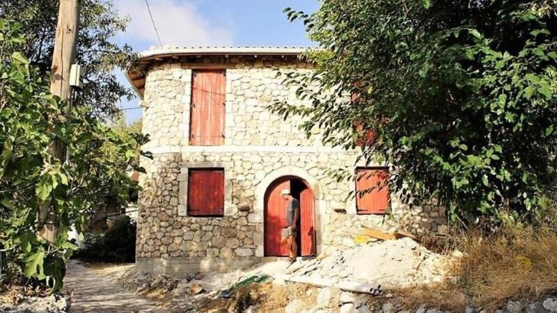On the island of Lefkada, west of the Greek mainland and south of Corfu, this traditional stone house in the village of Kalamitsi measures about 110sq m (1,184sq ft). Renovation has begun on the exterior but inside still awaits work. The house is surrounded by native plants.