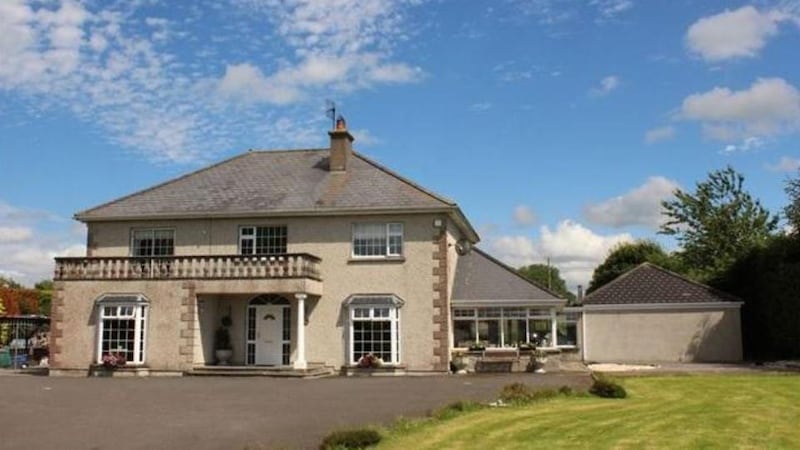 A walk away from the centre of Cashel, this 390sq m (4,198sq ft) house is opposite a sports field. It has a grand entrance comprising a double-height hall with stairs up one side and a chandelier overhead. Beyond are a kitchen/diningroom, with glazed doors to the garden, and a sunroom. There are four other reception rooms, one with a fireplace and one with a wood-burning stove. Upstairs are four bedrooms, two of which share an en suite and one which has a bathroom of its own. Spiral stairs lead to a floored attic with two Velux windows. There is a garage. BER: C1