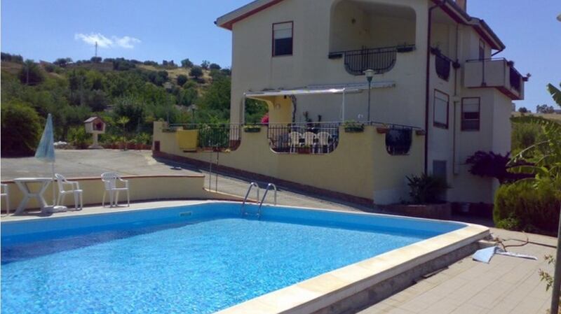 In the Cianciana district, this 300sq m (3,229sq ft) house comes with a swimming pool. It comprises two storeys above a service floor that has a garage and storage space. On the first floor is a 50sq m (538sq ft) living room with fireplace, a kitchen/dining room, bathroom and veranda. Above are three bedrooms and a bathroom plus balconies. Outside are two wells, a barbecue area, pool shower, vines and fruit trees including apricots, pears, lemons and oranges.