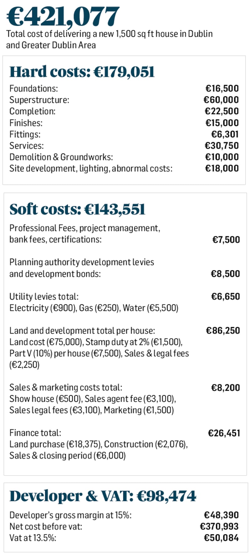 While land acquisition costs, development levies and construction alone can easily see the bill for a new home eclipse the €350,000 mark, it’s the developer’s margin that tends to dominate debate when housing is discussed.
