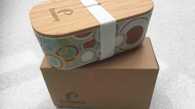 This bamboo bento box by Ecosavvy is made from farmed bamboo that is a sustainable and eco-friendly. It's BPA-free and vegan friendly.