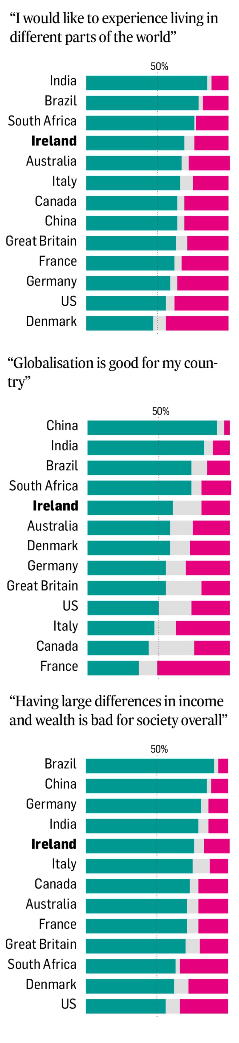 The Ipsos/Irish Times data presents Ireland among its European counterparts and larger nations. The full survey includes 25 countries. ipsos.com