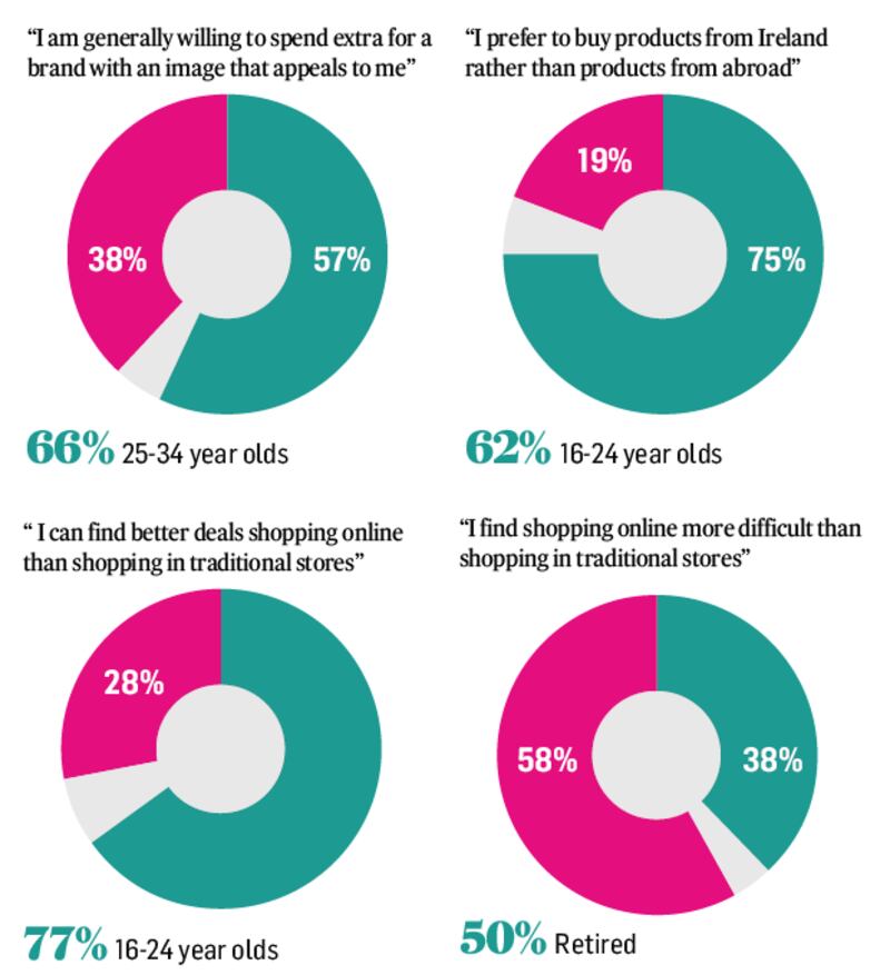 When the researchers from Ipsos asked Irish people if they were "generally willing to spend extra for a brand with an image that appeals", 57 per cent said an enthusiastic yes, placing Ireland in fourth position in the global league table, behind China and India on 73 per cent and South Africa on 69 per cent.