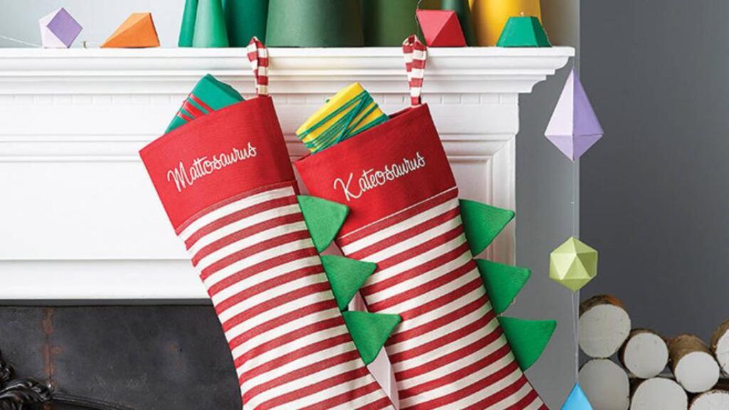 It doesn't feel like Christmas unless you hang a stocking by the fire. These personalised Sgt. Smith Christmasosaurus stockings will appeal to kids of all ages. They cost E28.96 each. notonthehighstreet.com
