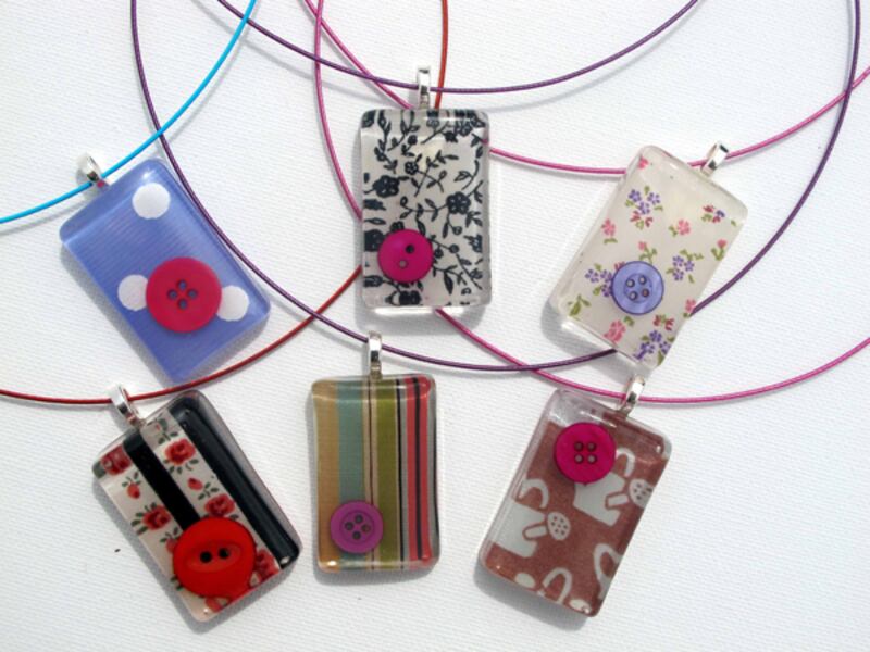 Jane Walsh’s Athlone-based Button Studio makes fun jewellery from clear resin and reclaimed buttons in a huge array of colours. Each piece comes with a handmade pillow box with a button . See