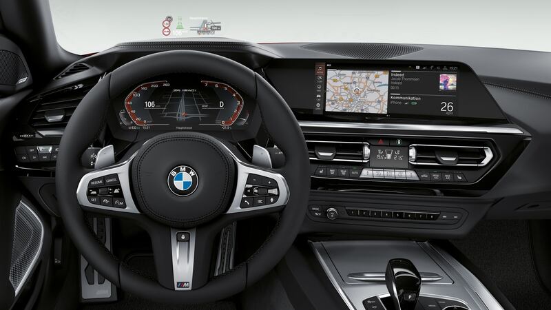 Actually, take a look at that iDrive screen. It's taller, thinner, and more blended in with the main instrument panel than before. In fact it almost looks a little like the screen layout favoured by Toyota… Which should come as no surprise, as the Z4 shares its basic structure and turbo engine with the new Supra, although the Toyota will be available strictly as a coupe. The Z4 debuts as a convertible, but it's possible that BMW has plans for a hard-top version at some point.