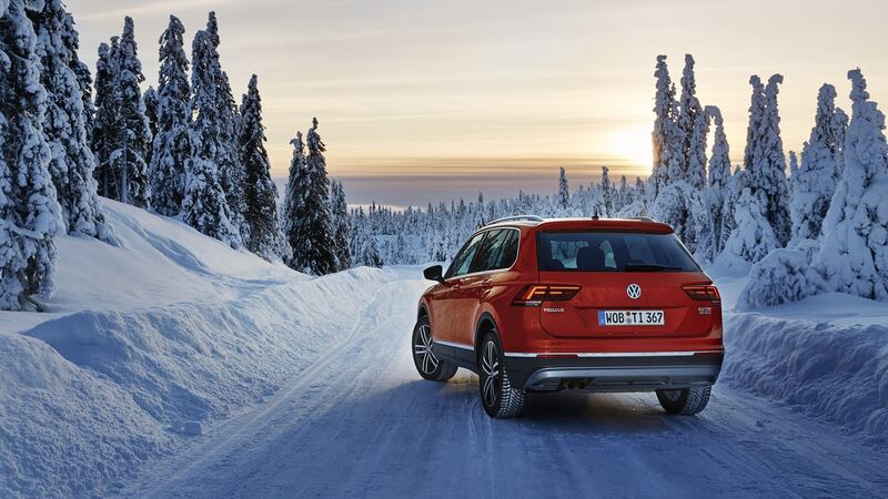 Different this time, though. Volkswagen didn’t bother with studs, leaving its second-generation Tiguans replete with winter tyres. These won’t exactly replicate the steering feel or the handling finesse of a set of standard tyres, but they’re a lot closer than a set of metal porcupines.