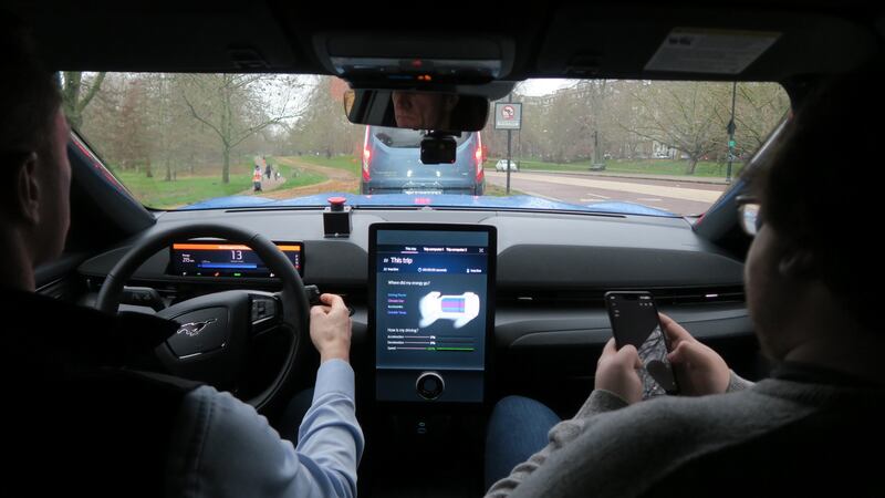 The Mach-E’s is similar in size to a Kuga and there is seating for five, while its suspension, steering weight, electronic stability control and all-wheel drive settings have been tuned for more demanding European tastes.