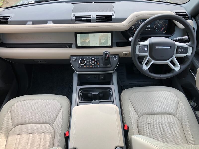 Inside is the biggest change, with soft, comfortable seating and a mix of hardwearing plastics with more modern soft-plastic touches you’d find in any premium saloon. Some of attempts to play up the rough and tumble workhorse reputation inside don’t really work, such as the rivets on the door panels. They are incongruous to the digital displays and comfort features inside. Those digital features are focussed on a new standard 10-inch touchscreen in the centre of the dash. It’s smart, intuitive and stylish, but you can’t help wondering how it will survive amid the rain-soaked fingerprints and muddy paws that you normally associate with a Defender dashboard. At the grand unveiling of this car last September, its engineers were adamant this interior can survive the rough and tumble. I’m intrigued to see a used one five years time after life on a proper working farm.