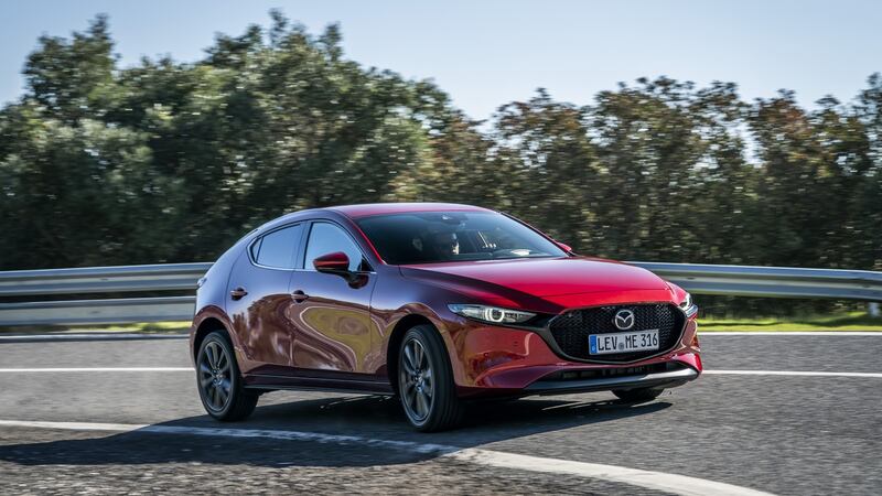 So diesel ain’t dead? No, and nor ever was it really. Mazda Ireland reports a steady demand for diesel from its rural dealerships, suggesting that there’s still a strong town and country divide on the diesel/petrol/hybrid debate. Even so, the 3 will likely reach a 65 per cent majority of its customers with a petrol engine, but this time it’s a petrol hybrid. Well, almost. It’s actually a mild-hybrid, running a simple 24-volt system (simple, and more affordable, than rivals’ 48-volt setups) that uses a small battery mounted under the back seat which can boost the engine’s power by 6kW when needed, or helps to save fuel by taking care of various electrical subsystems and the sharper-reacting stop-start system. Oh, and the 2.0-litre engine has cylinder deactivation to help save yet more fuel.