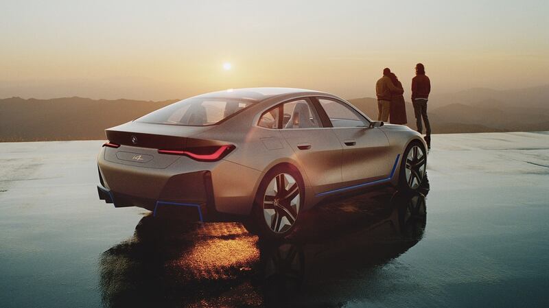 Brown is a brave colour for a concept car, but the i4 kind of pulls it off with the Frozen Light Copper paint, which has delicate dark blue highlights that are meant to connect it, spiritually, to the ground-breaking i3 and i8.