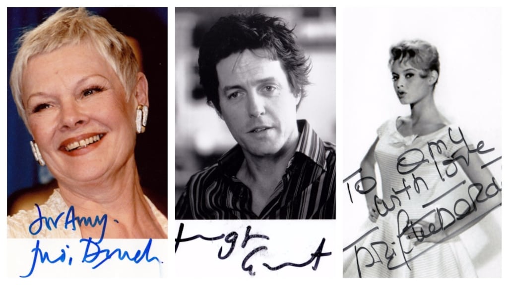 Over the next few years, I amassed a collection of a few hundred autographs. Brigitte Bardot, Hugh Grant, Terry Wogan, Judi Dench. The list goes on and on. My pocket money was spent on writing supplies and a lot of time was spent deciphering illegible handwriting. I loved every second of it.