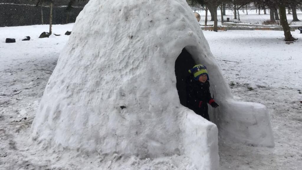 She also had some igloo facts: “Igloos are 40 degrees hotter inside than outside ...” She didn’t have much time to talk as she expected the igloo to be completed in another hour. (The igloo took four hours to build in total).