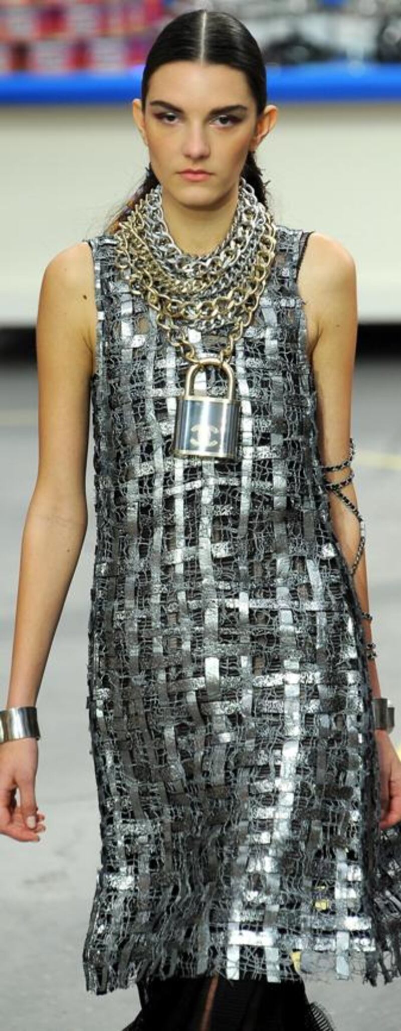 Keeping the house codes refreshed, Chanel's familiar leather-and-chain straps were cheekily interwoven on wire shopping baskets, while handbags were luxurious versions of wrapped meat packs. Karl Lagerfeld still knows how to deliver the goods and keep the tills ringing. Some 55 per cent of its profits are from perfumes and cosmetics. How many women can afford a Chanel suit?