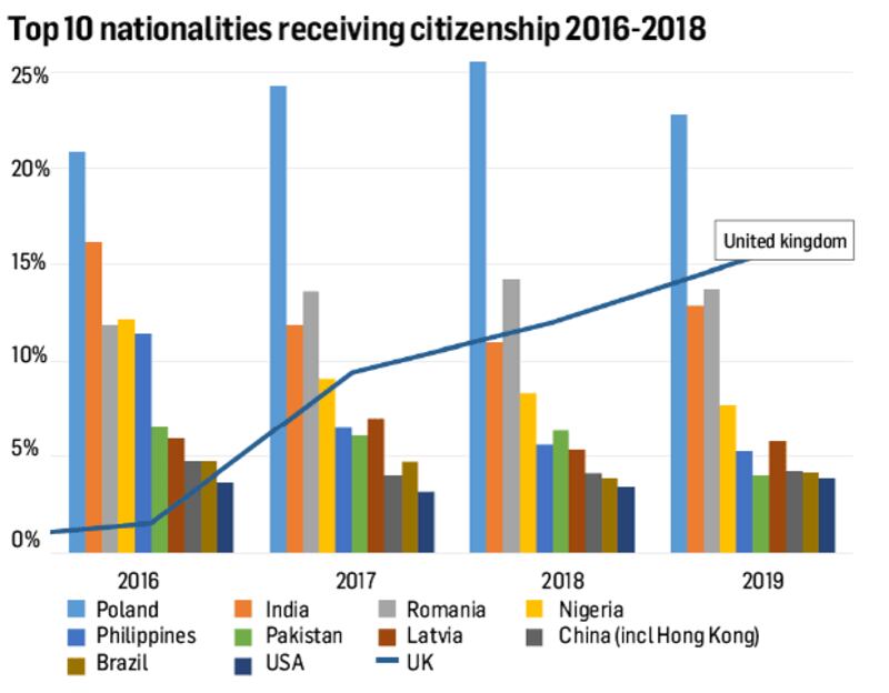 Overall, there has been a slight increase in applications, but the rise is steady rather than dramatic. In 2018, 12,862 people applied for Irish citizenship, and 8,226 certificates of nationality were issued.