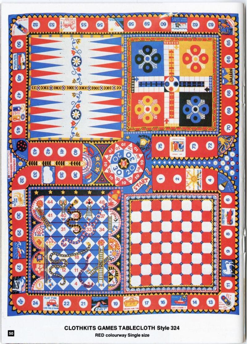 The catalogues so exactly represent the mid-1970s that one image, young Patrick in lion-print dungarees, inspired a figure in a tapestry centred in that period that Grayson Perry designed for his House for Essex artwork, the art feeding textile design feeding textile art circle completed.