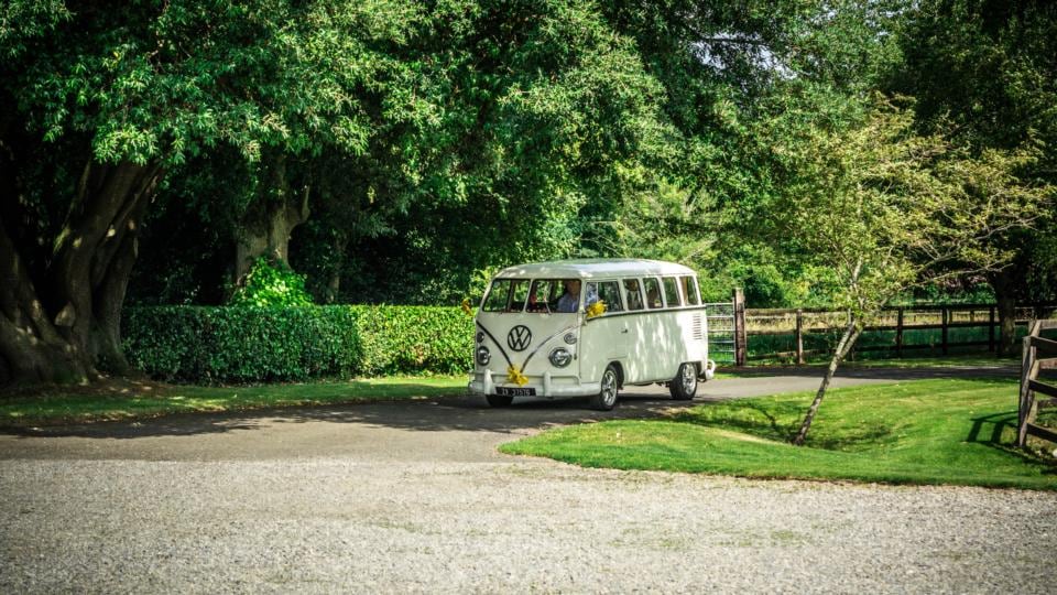 The bride travelled from home in a vintage VW campervan with her parents, Labour councillor Kevin Byrne and Patricia Byrne, bridesmaids (sisters Lesley-Anne Uzice and Louisa Kelly) and flower girl, Zoey Uzice (3).