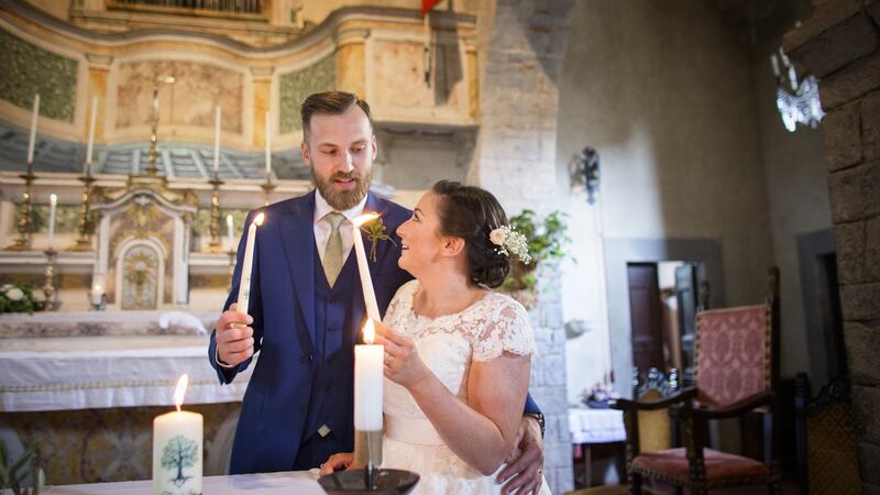 He proposed over Christmas 2013 – with an antique ruby and diamond ring – in Rathdangan, Co Wicklow, where Trina’s family was renting a house.