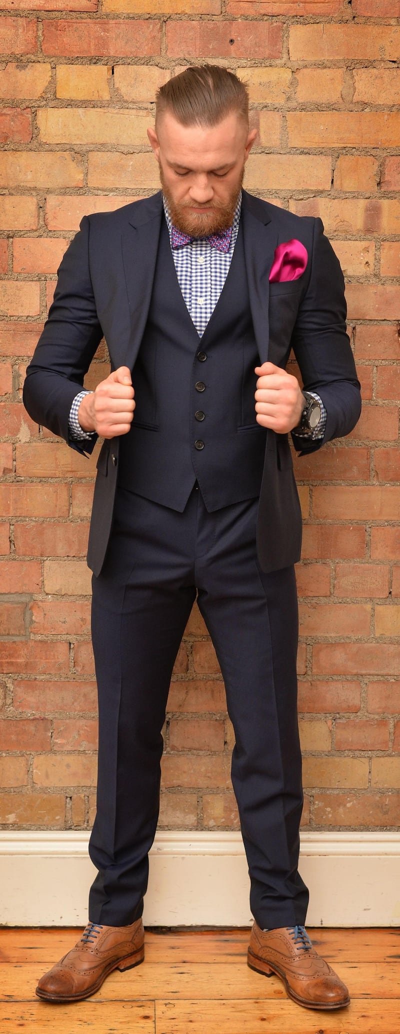 The sport isn’t associated with such style, but he reckons that’s changing. “A lot of them in mixed martial arts don’t care about how they look, but since I have come on the scene, I think they are dressing better. We all stay in the same hotel and some look like homeless people and I am around them in suspenders and dicky bows! I am aware that how you look is part of the business. If guys are happy being mid-tier it shows in the way they dress.”