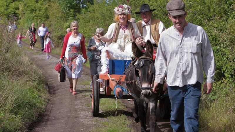 “This is me arriving at Dusty Bluebell Cottage with my Dad for our wedding,” says Julie Lombard. “My Dad, Tommy, is wearing his cowboy gear. Every year for the past 10 years my dad has travelled to Tombstone, Arizona, to take part in the re-enactment of the Shootout at the OK Corral. He is the original Rhinestone Cowboy.”