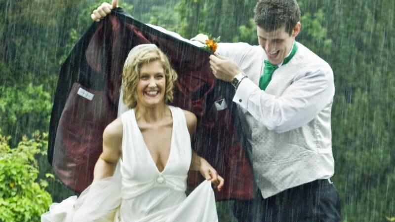 A surprise torrent of rain on a June bank holiday in Ballina, had Laura and Matt Steerman soaking wet but “laughing” on their wedding day in 2008.